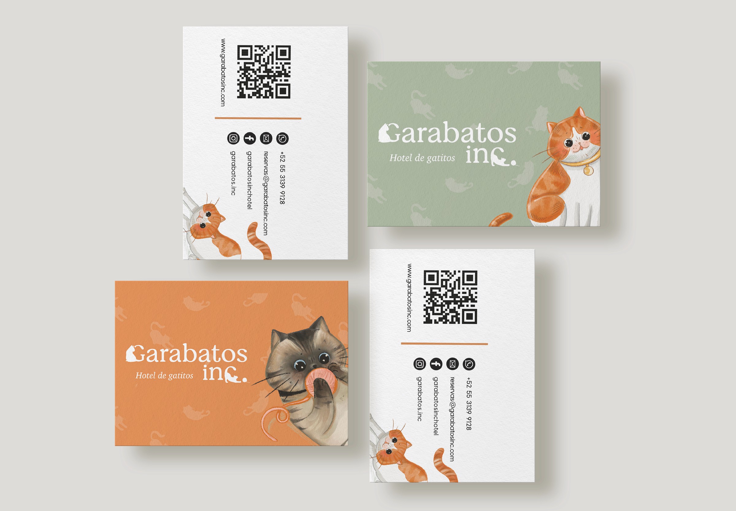 Garabatos Inc es un hotel para gatitos ubicado en la Ciudad de México, especializado en brindar hospedaje, atención y cuidado personalizado para cada uno de sus huéspedes. Tras consolidarse como un referente en la ciudad, sus fundadores nos contactaron para llevar a cabo un proceso de rebranding. Su objetivo era actualizar la imagen de la marca para reflejar la reputación y el nivel de calidad que ya habían alcanzado con el tiempo.